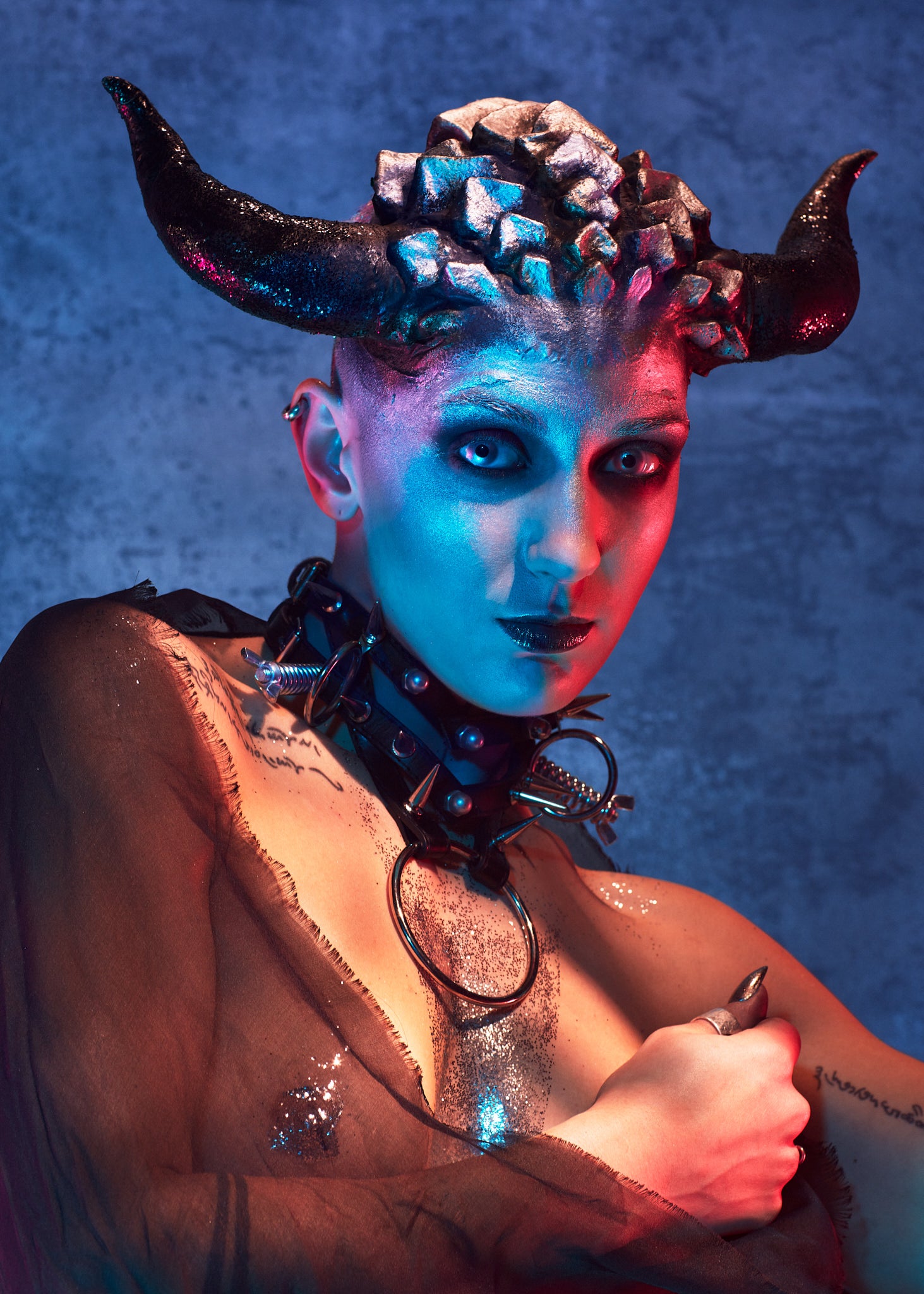 “Seven years ago I performed at my very first Wasteland Party on stage as an artist, captured in Darren’s portrait. In addition to the obvious pressure and stress, that day my acts were even more difficult because I had at that moment only one usable hand, due to an accident and emergency surgery. I went through with the show anyway, and gave all of myself on that main stage, body and soul. That’s the way I entered the beautiful family of Wasteland artists, with pain, rage, and passion. Such an important step for my performing life.”